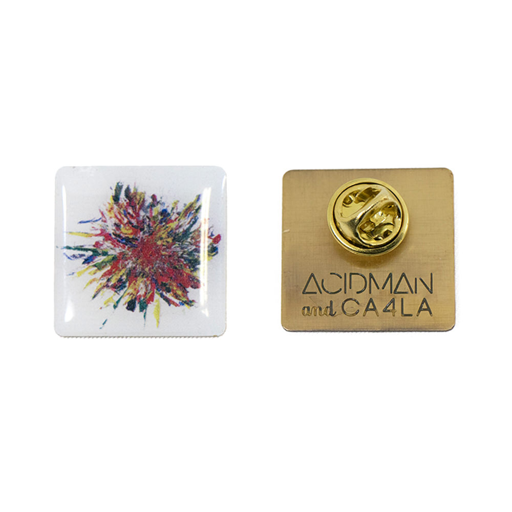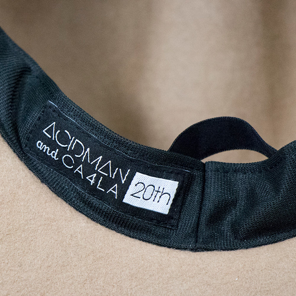 ハット裏にはACIDMAN x CA4LAのオリジナルネームタグ仕様、そして今回は特別にSAI x CA4LAオリジナルピンバッジが付属。
