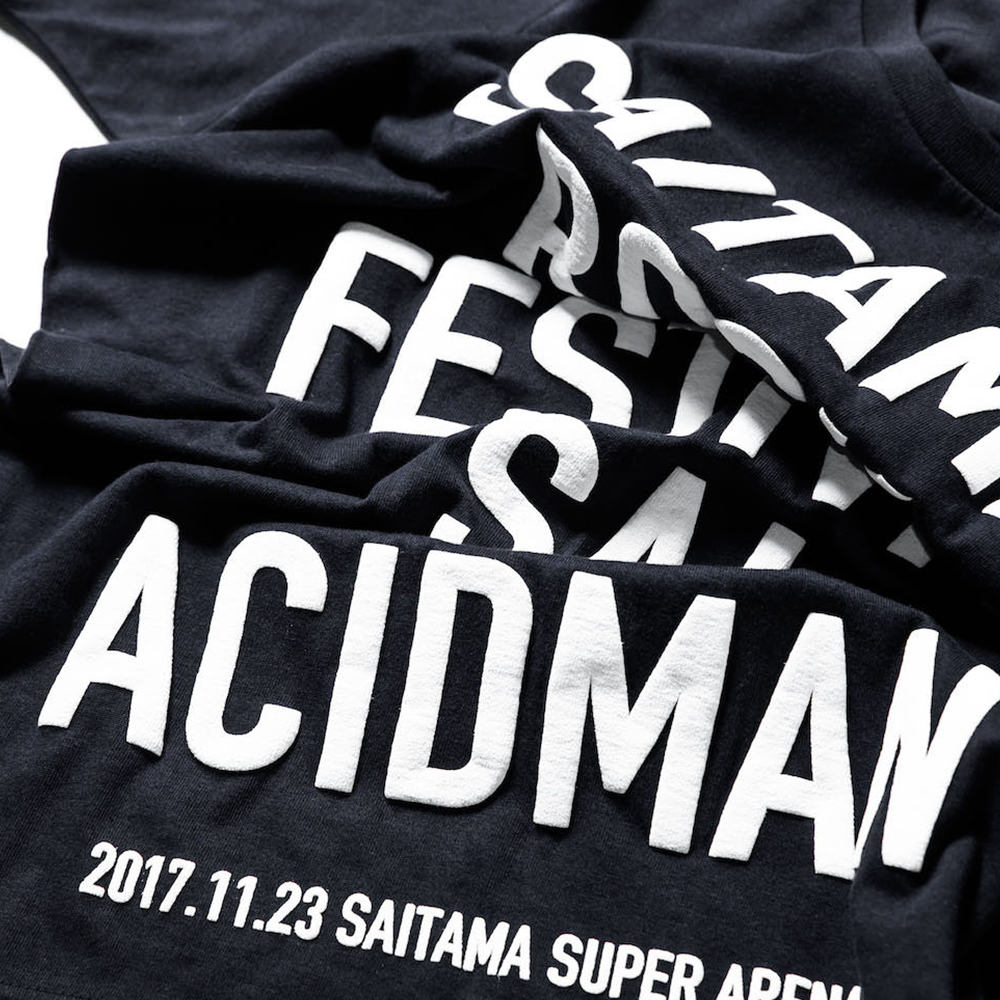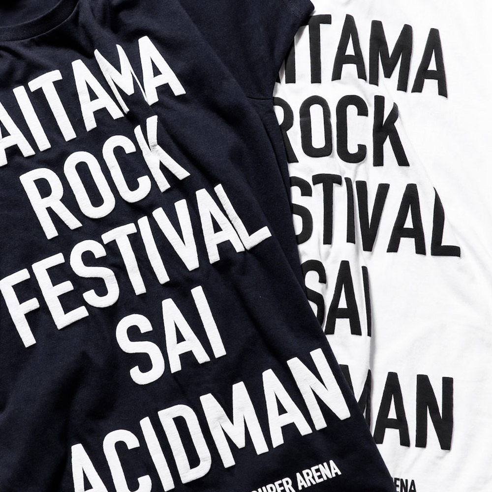 フェスタイトル、「ACIDMAN presents SAITAMA ROCK FESTIVAL SAI」を大胆に配置し、発泡プリントを施したTシャツ。