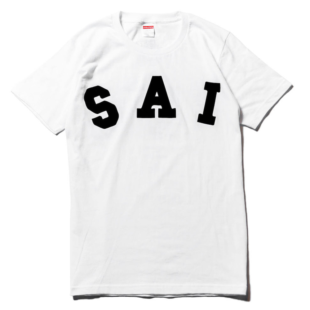 “SAI”をカレッジテイストにアレンジし、並びにも変化を加え、フロッキープリントにて製作されたTシャツ。