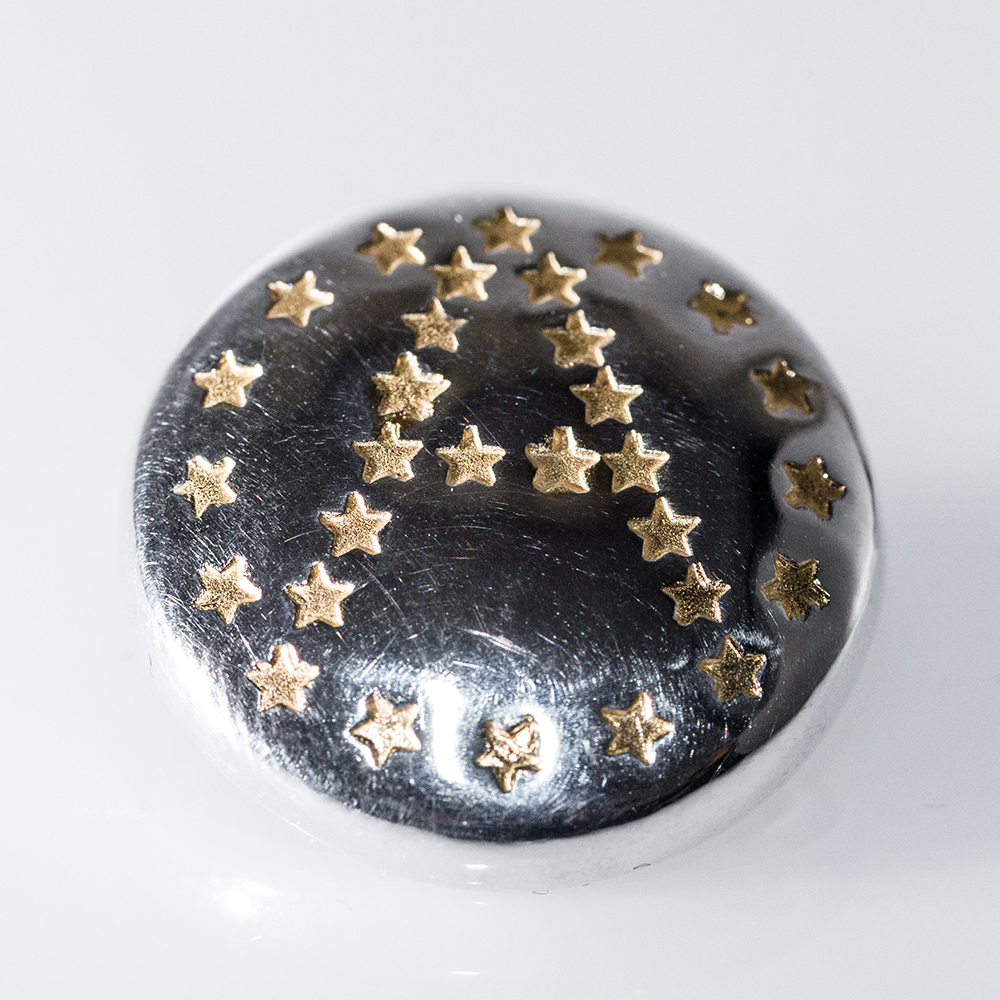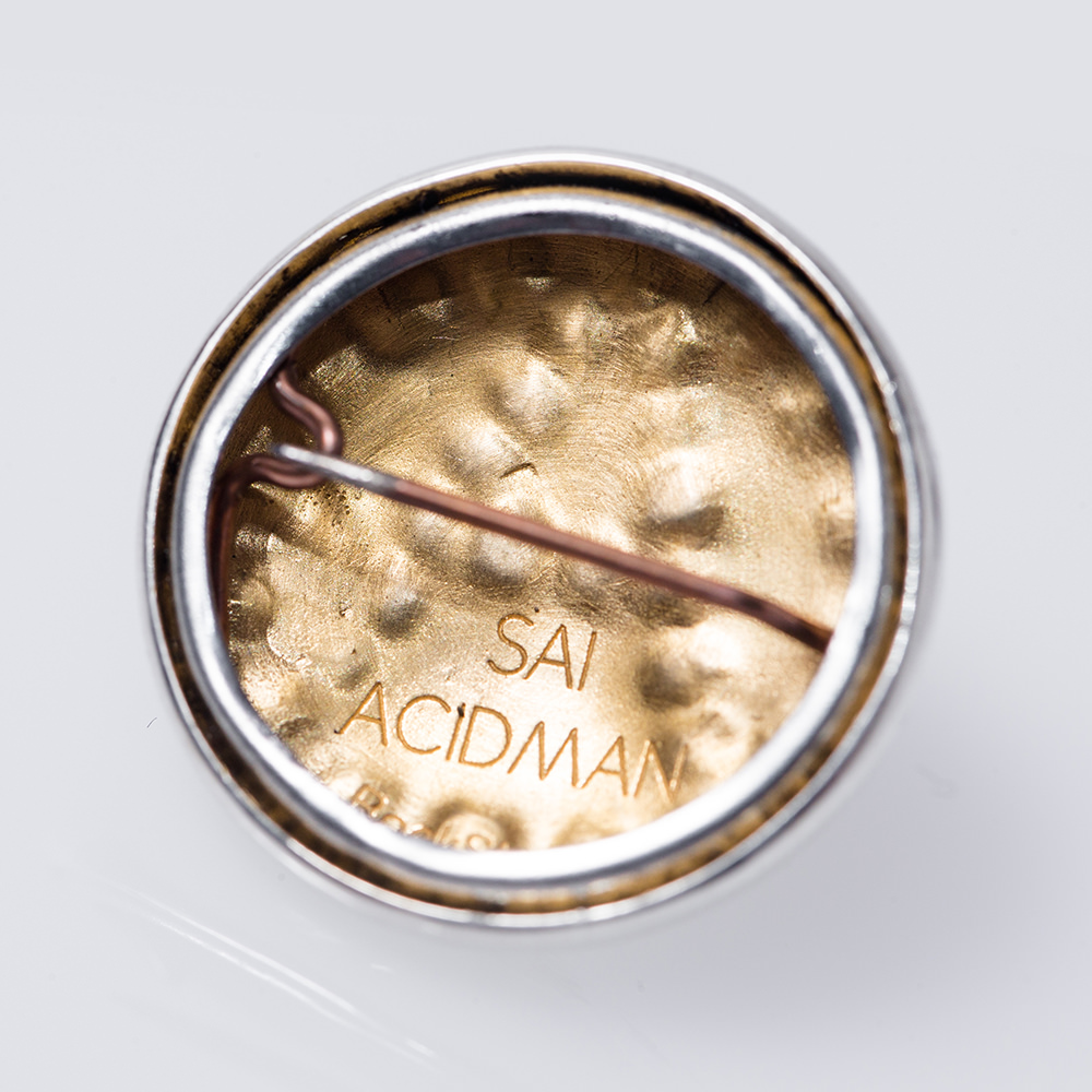 Silver925で作られた贅沢すぎるバッジを制作。「A」の文字を形成する星の部分には18kのGoldを使用。バッジ裏にはSAI x Rock Steadyのコラボネームを刻印。