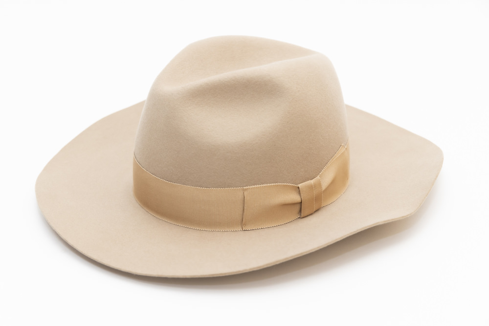 シルエットや素材感などVo.Gt大木伸夫のステージ着用モデルをベースに作られた、存在感のあるワイドブリムのフェルトハット。ウールの中でも特に高品質なメリノウールで仕立て、裏地には「SAI」のビジュアルアートをモチーフにした総柄生地を採用した逸品。