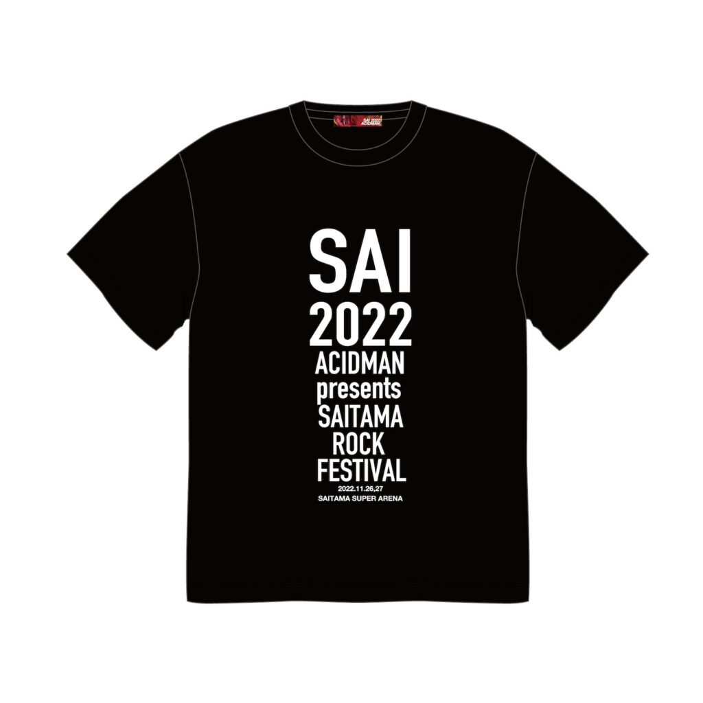 フェスタイトル「SAITAMA ROCK FESTIVAL “SAI” 2022 」を大きくボディプリントしたシンプルながら存在感のあるTシャツ。バックプリントには全出演アーティストロゴを配置予定。